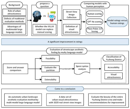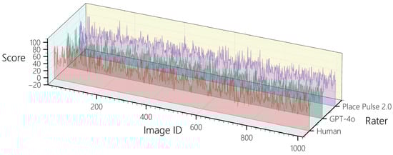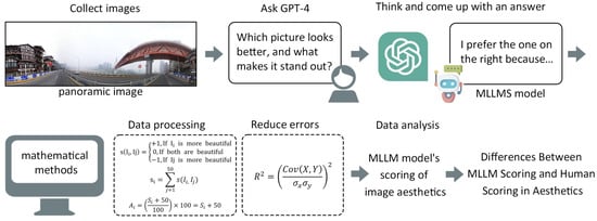 - It introduces an automated framework for assessing urban landscape attractiveness based on GPT-4o, a multimodal large language model. By leveraging GPT-4o’s capabilities in image comprehension and linguistic reasoning, the method replaces labour-intensive aesthetic evaluations with an efficient, standardised process [21]. The open-ended question “Which image is more attractive?” is transformed into a structured decision task, yielding clear categorical outcomes (“more attractive,” “indistinguishable,” and “less attractive”). This structured, replicable workflow significantly improves evaluation efficiency while maintaining high levels of consistency and interpretability, illustrating the practical potential of MLLMs for subjective, cognitively demanding tasks.