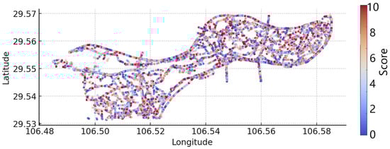 - Based on the pairwise comparison methodology of MIT Place Pulse 2.0, we constructed a dataset of 1020 real-world street-view images for visual attractiveness assessment. Each image was compared to 50 others, resulting in a model-generated relative ranking of aesthetic appeal. Simultaneously, we collected human preference data for the same image set via a crowdsourcing platform. The resulting dataset enables rigorous cross-modal comparison and serves as a standardised reference for future research in urban visual analysis and aesthetic model development. Figure 1 illustrates the research workflow—from model-based and human aesthetic judgments to a comprehensive attractiveness evaluation of the Yuzhong District in Chongqing, China, which highlightings the method’s scalability and potential for broad application.