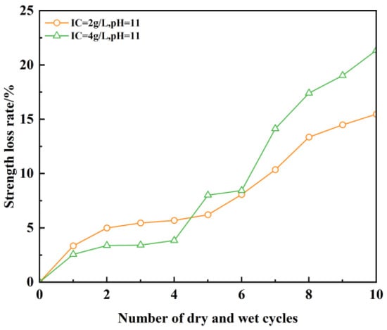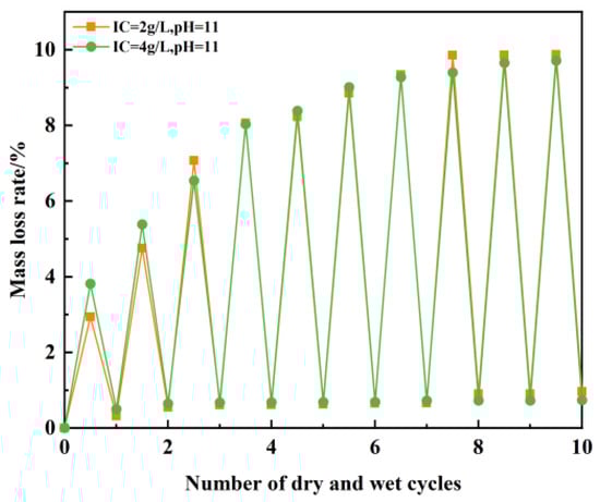 4.2. Influence of Mass Loss in Dry–Wet Cycle on Sample Strength