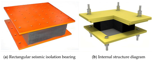 In terms of morphology and structure, the early isolation bearings are represented by lead rubber bearings (LRBs), which have been mentioned in many studies. For example, Ren et al. [16] carried out numerical simulation analysis on the damage of lead rubber bearings and superstructure response under near-fault earthquakes. The lead rubber bearing is made of rubber layers and steel plates alternately superimposed and vulcanized, and the lead core is placed in the rubber center. This structure has both the elastic deformation capacity of rubber and the energy consumption characteristics of lead. In addition, Aiken et al. [17] conducted experimental research on the mechanical properties of three types of isolation bearings, and the structural types of traditional isolation bearings covered therein provided basic reference for subsequent research. In recent years, new seismic isolation bearings have been emerging. Wang et al. [18] proposed a new type of roller-type isolation bearing with energy dissipation capacity and conducted experimental research on its isolation system. The unique roller structure of the bearing changed the movement mode of the traditional isolation bearing, bringing new ideas to the isolation technology. Peng et al. [19] studied the sliding magnetic isolation bearing considering the site conditions, and realized the sliding isolation by using the magnetic characteristics, which provided a new direction for the shape and structural design of the isolation bearing. Wang et al. [20] experimentally studied a new type of self-centering seismic isolation bearing combined with super elastic shape memory alloy. By using the characteristics of the shape memory alloy, the bearing can be better restored to its original position after an earthquake, and the functional characteristics of the isolation bearing are improved.