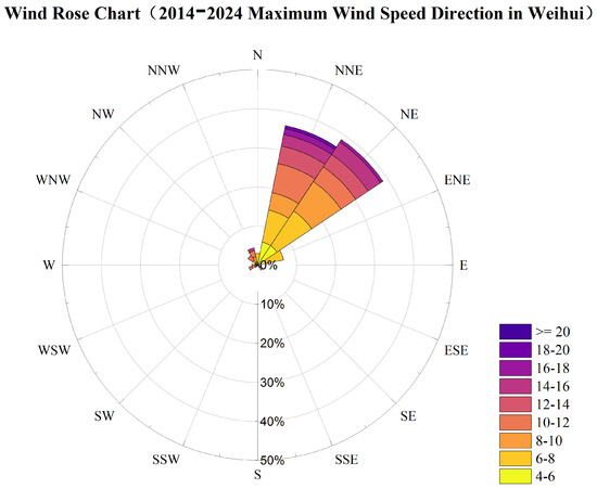 Wind rose of maximum wind speeds in Weihui (2014–2024).