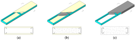 CFS framing composite walls utilize load-bearing skeletons comprising CFS members, typically fabricated from cold-formed thin-walled steel with inherent advantages of lightweight design and efficient manufacturability, integrated with multi-material components: cladding panels, thermal insulation layers, foam concrete elements, and mechanical fasteners for reliable intercomponent connections [11,12]. Current CFS composite wall systems are primarily classified into three configurations: CFS framing with overlay panels, CFS framing with grout-filled cavities, and CFS framing with foam concrete composites; structural details are shown in Figure 1. Comprehensive investigations of these systems by international researchers have established robust theoretical foundations for system optimization.