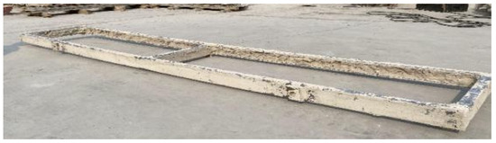 Wall panel specimens employed single monolithic casting to ensure that foamed concrete fully filled the skeleton interstices and encapsulated the framing. After concrete placement, a second layer of alkali-resistant glass fiber mesh was embedded into the surface. Mold-skeleton alignment was maintained during pouring to control concrete cover thickness. Considering foamed concrete’s enhanced fluidity compared to conventional concrete, sand backfilling was applied at mold joints to prevent leakage.
