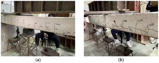 The formal loading phase employed a graded loading protocol with 2 kN increments. Each load level was maintained for 5 min to ensure complete stress redistribution, during which crack pattern observation, width measurement, and critical strain data acquisition were conducted concurrently.