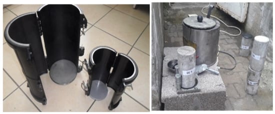 A total of 12 cylindrical concrete specimens, each measuring 100 mm in diameter and 200 mm in height, were prepared and cast in the civil engineering laboratories at Sakarya university. The specimens were demolded 24 h after casting and then cured in a water tank for 28 days to facilitate proper hydration and strength development. After the curing period, the specimens were removed from the water tank and air-dried for 24 h prior to testing. Sulfur capping was applied to the loading surfaces to ensure uniform stress distribution during compressive loading. The capping compound was prepared by melting a mixture of 70% yellow sulfur and 30% graphite powder at 300 °C, producing a smooth and level surface to facilitate effective load transfer (Figure 1). Uniaxial compressive loading was applied to the specimens at a constant displacement rate of 4 mm/min, continuing until failure occurred.