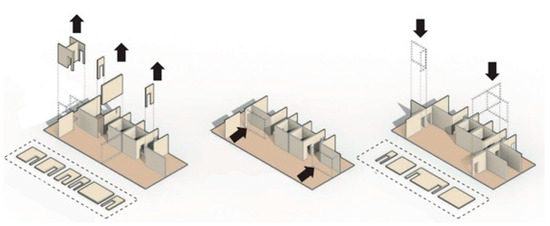 Scenario 1 (S1): Walls removed, walls moved, and walls added in case study building design. Illustration: ETTELVA Architects.
