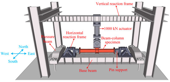 Figure 3 displays the test setup of OS and WSIC. The two ends of the specimens were connected by pins to provide hinge constraints. An MTS100T (1000 kN) hydraulic actuator was connected to the loading end of the failure column. The displacement-controlled method, with monotonically increasing upward tension, was employed to load the column to failure.