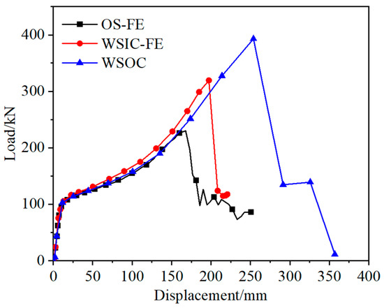 Load–displacement curves of the WSOC, WSIC, and OS under FE analysis.