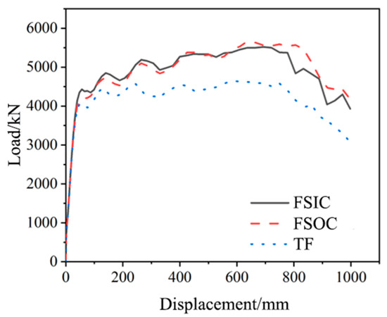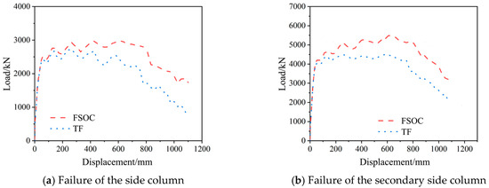 Load–displacement curves of the FSOC and TF under the failure of the side column and secondary side column.