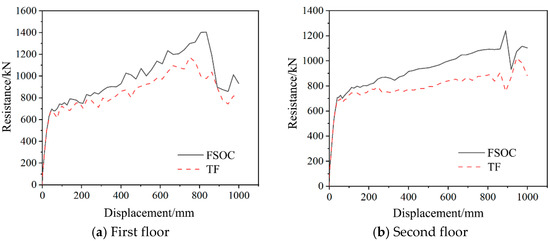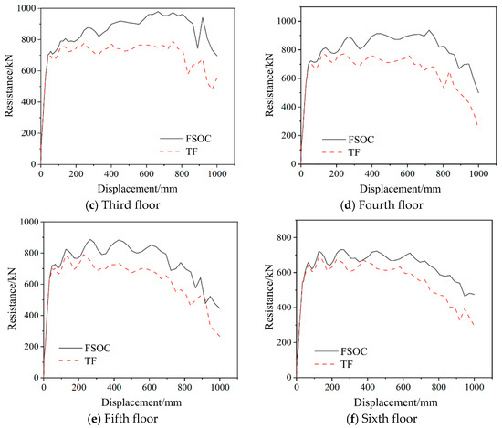Comparison of the collapse resistance development curves of each floor between the FSOC and TF.
