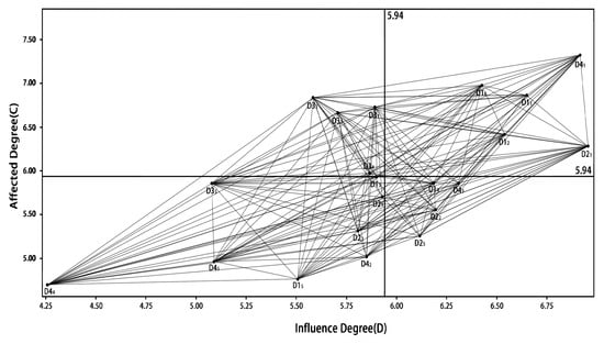 Analyze Di + Ci (prominence) and Di − Ci (net influence) to generate an Influence Network Relation Map (INRM) (Figure 3), categorizing demand elements.