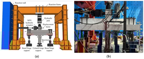 Cyclic loading tests were performed in the Structural Laboratory of Xi’an University of Science and Technology on beam–column specimens extracted from inflection points of a prototype frame structure. The experimental configuration, as shown in Figure 3, incorporated a 500 mm extended column head at the top-layer joint to ensure precise alignment and force transfer during testing.