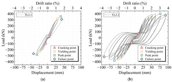Hysteretic curve of TLJ-1 and TLJ-2: (a) TLJ-1, (b) TLJ-2.