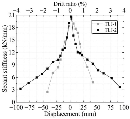 Stiffness degradation curves of TLJ-1 and TLJ-2.