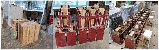 - GB/T 1927.11-2022; Standardization Administration of China. Test Methods for Physical and Mechanical Properties of Small Clear Wood Specimens—Part 11: Determination of Compressive Strength Parallel to Grain. China Standards Press: Beijing, China, 2022.