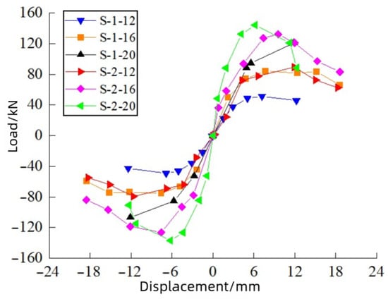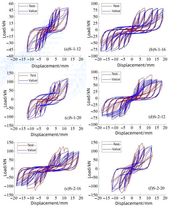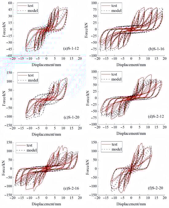 - An ANSYS numerical model of the specimens under low-cycle reversed loading was established. Comparative analysis between numerical simulations and experimental results confirmed that the model accurately captures stiffness and strength degradation, validating its reliability;