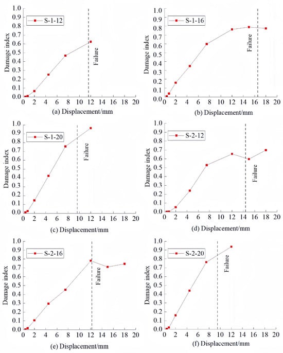 - Based on cumulative damage analysis, a correlation between specimen damage and the cumulative damage factor (Dw) was established. When Dw < 0.6, the specimen sustains moderate damage with no obvious signs; when 0.6 ≤ Dw < 0.7, the specimen is severely damaged; and when Dw ≥ 0.7, the specimen fails. Adhering to conservative evaluation principles, the critical damage index for joint failure is uniformly set at 0.6 and serves as the design basis.