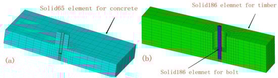 - The ANSYS numerical model employed simplifications, leading to deviations in simulating the pinching effects of hysteretic curves. Future numerical analyses could utilize more accurate timber constitutive models (e.g., ANISO) or refined elements (e.g., spring elements) to simulate bolt-concrete (or timber) interactions;