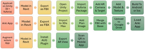 To make the three-dimensional model accessible within an augmented reality (AR) environment, software solutions compatible with local conditions in Türkiye were evaluated to enhance user accessibility. In this regard, integration tests were conducted using two different AR applications: Augmentecture, a plug-in specifically developed for Revit, and ARki, a mobile platform application. Additionally, a customized AR application was developed using Unity 3D 2021.3.36f1 (LTS) software, and its performance was analyzed comparatively.
