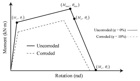 - Kashani, M.M.; Lowes, L.N.; Crewe, A.J.; Alexander, N.A. Phenomenological Hysteretic Model for Corroded Reinforcing Bars Including Inelastic Buckling and Low-Cycle Fatigue Degradation. Comput. Struct 2015, 156, 58–71. [Google Scholar] [CrossRef]