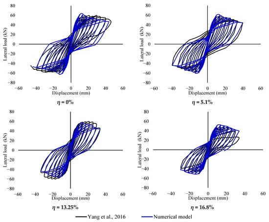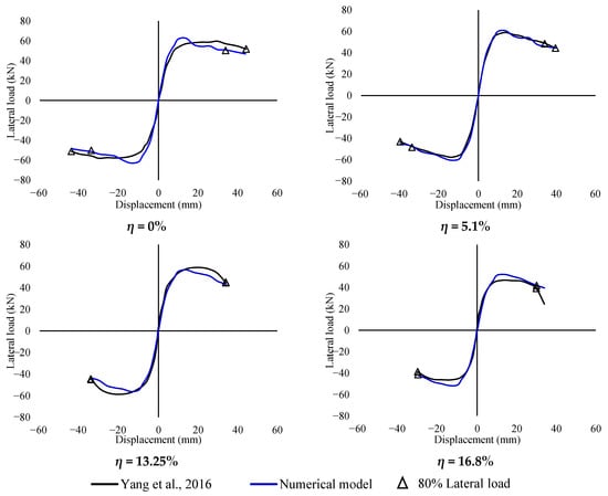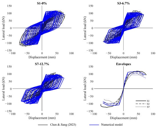 | Ultimate displacement (mm) (−) | 44.0 | 33.9 | 23.0 | 43.1 | 48.5 | 12.5 | 34.0 | 33.9 | 0.3 | 30.1 | 29.9 | 0.7 |