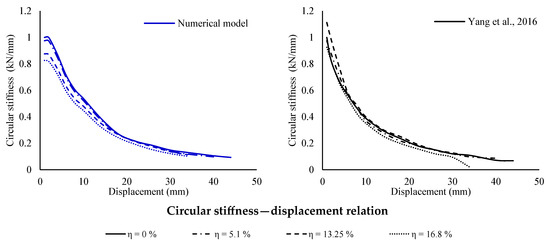 | Ultimate displacement (mm) (−) | 76.4 | 68.8 | 9.9 | 70.1 | 69.7 | 0.6 | 51.2 | 68.8 | 34.4 |