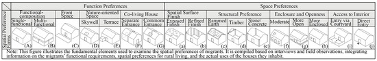Section 3.1), this study first establishes a foundation for understanding spatial traditions within rural forms. This benchmark provides a point of reference for the more detailed assessment of spatial and behavioral interventions undertaken by urban-to-rural migrants. Subsequently, through the analysis of spatial preferences, site selection, and locational strategies (