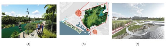 | Main Objective | Recovery of public spaces and raising environmental awareness. | Reflect on the urban–natural disconnection and promote their integration. | Restore dense urban rivers from a multifunctional approach. |