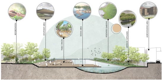 | Environmental Factors Involved | Green area conservation; improvement of water quality. | Integration of natural elements into urban areas, considering topography. | Restoration of the river’s ecosystem services. |