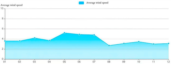 Rucheng is characterised by abundant wind resources. Over the past decade, the region has recorded 3297 windy days, accounting for 90.3% of the total. Prevailing winds originate from the south or southeast during summer and from the north during winter. However, measurements have indicated that the dominant summer wind direction in Jinshan Village is from the north, primarily due to the influence of local terrain and a pond located at the village entrance. This pond generates a pressure differential via evaporative cooling, inducing forced air convection that results in a regional “artificial” water–land breeze. Combined with the natural southeast wind that typically prevails during summer in Rucheng, these two systems form stable convective sources that enhance summer ventilation in local residential buildings. According to data from the China Meteorological Network, the average wind speed in the Rucheng area of Chenzhou is 3.46 m/s, and the region is characterised by gentle winds, resulting in generally comfortable outdoor conditions.