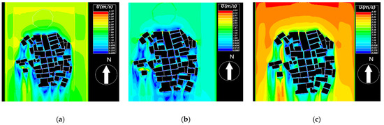 Wind speed cloud map, (a) 0.5 m; (b) 1.5 m; (c) 5.5 m.