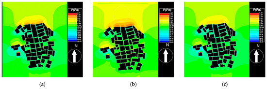 According to the “Green Building Evaluation Standard” (GBT50378-2019) [9] and local conditions, the objective criteria for summer outdoor ventilation in Jinshan Village are established as follows: no vortices or stagnant wind zones should be present within the human activity areas on site, and the average wind speed should range between 0.7 m/s and 2.9 m/s; additionally, the wind pressure differential between the windward and leeward surfaces of the building should exceed 0.5 Pa.