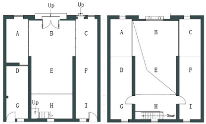 The overall layout of Jinshan Village, which represents approximately 90% of residential layouts in Rucheng, is oriented along a north–south axis, with a pond located at the northern entrance. The layout is centred around the ancestral hall and extends progressively rearward through alleys on both sides, expanding laterally to form a relatively regular and orderly “two-axis, three-centre, three-zone” chessboard structure. The selected individual buildings in Jinshan Village consist primarily of single-story and courtyard-style structures, with single-story dwellings comprising approximately 70%. This building type is among the most prevalent residential forms in Rucheng, resembling the traditional “one bright, two dark” configuration, typically featuring three or five bays arranged linearly. The main hall, facing the entrance, is situated centrally on the ground floor, with an approximate width of 4 m and a depth of 10 m. It is open from south to north and aligned with the prevailing summer wind direction. The exterior walls feature a variety of openings, including doors, windows, air vents, partitions, and screens. This configuration facilitates the formation of an effective ventilation corridor, enabling through drafts and enhancing airflow, as illustrated in the accompanying figure.