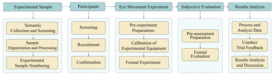 This section outlines the materials and methods of the experiment, covering the collection and processing of experimental samples, the use of eye-tracking equipment, the control of potential influencing factors, sample setup and experimental design, as well as the statistical methods for data processing and result analysis(The experimental flow chart is shown in Figure 3).