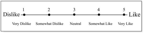 The Subjective Evaluation phase is conducted after the initial eye-tracking experiment. In this stage, participants’ aesthetic preference data on patterns are collected via Structured Questionnaire. This phase employs a 5-point Likert scale to evaluate the subjective reference for each group of patterns (as shown in Figure 9), with scale levels defined as 1 point (strongly dislike), 2 points (dislike), 3 points (neutral), 4 points (like), and 5 points (strongly like). By calculating the average scores for each group of patterns, the differences in participants’ preferences for different categories of patterns can be analyzed.