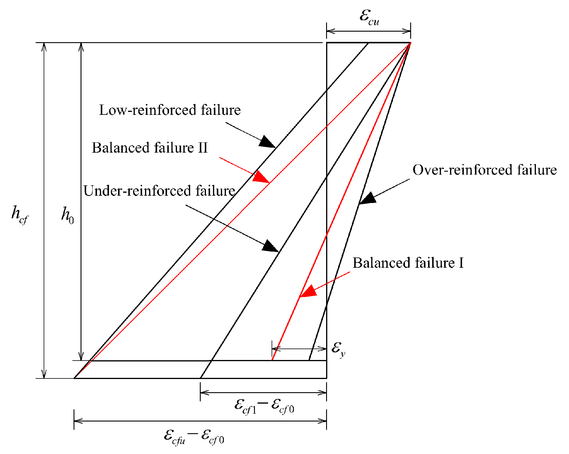 2.2. Analysis of the Tensile Strain Range for CFRP Sheets Based on the Under-Reinforced Failure Mode