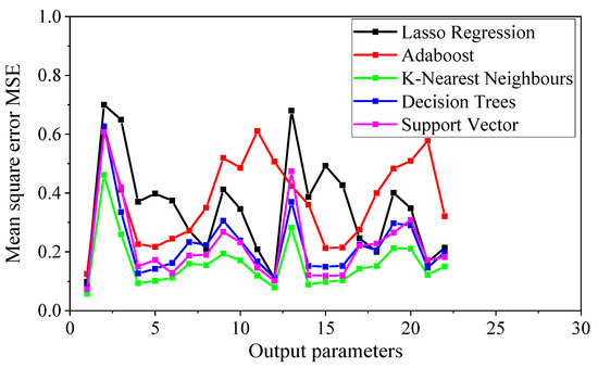 The predictive performance of various machine learning methods was systematically evaluated using mean squared error (MSE) and coefficient of determination (R2) metrics across all 22 output variables, with comparative results presented in Figure 2 and Figure 3.