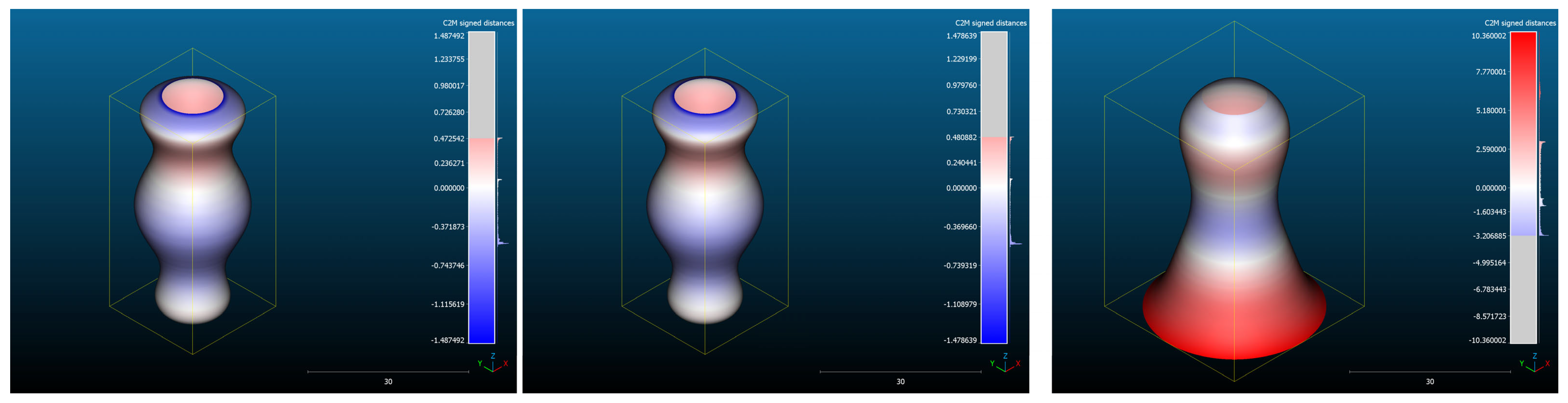 - CloudCompare 2.13.2 freeware (hereinafter referred to as CC), for comparing previously paired up diagrammatic representatives quantitatively, i.e., for computing, within such pairs, how far the vertices of the one representative are from the nearest ones of the other, as well as for defining scalar fields (hereinafter referred to as SFs) based on those comparison-wise distance datasets and deriving the relevant statistical parameters from (Section 2.5.1 and Section 3.1.1);