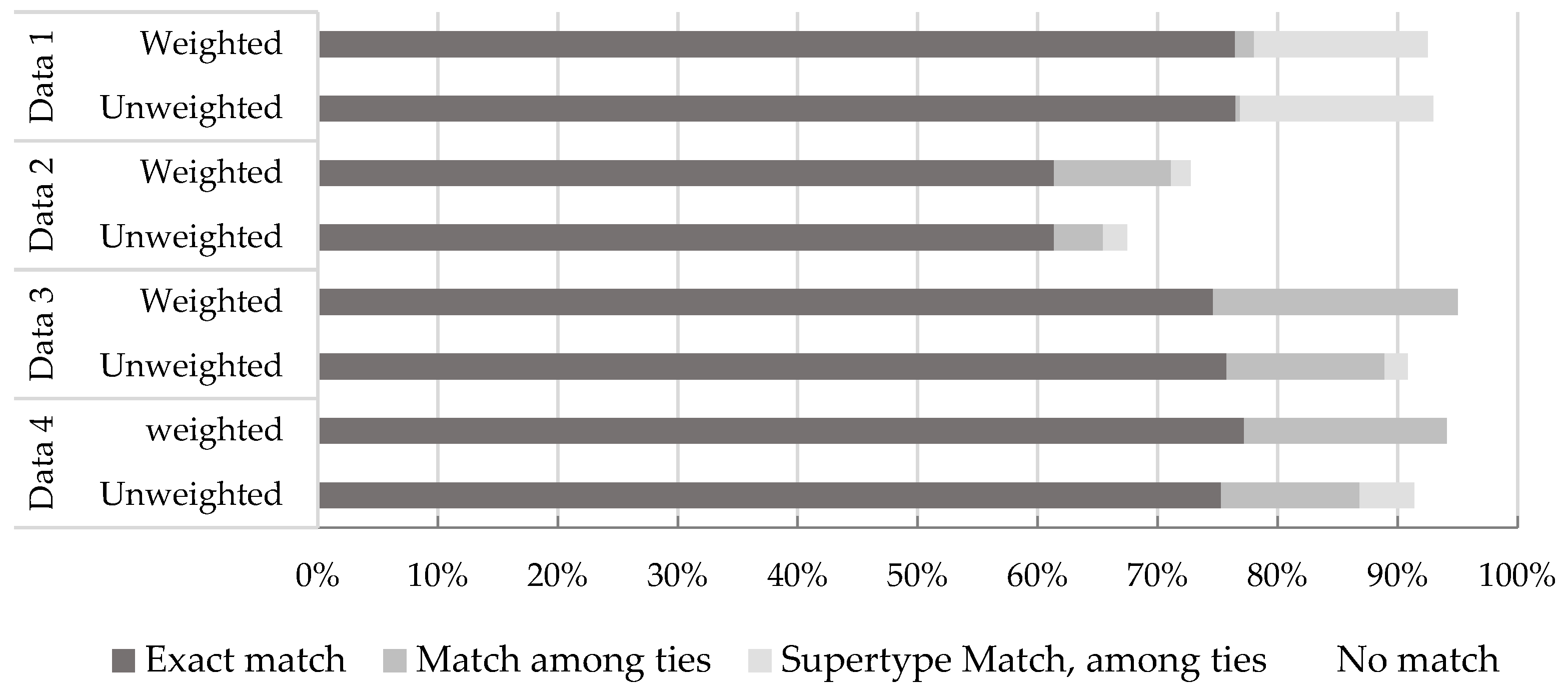 Data 2 (Construction Schedule, 246 objects) | Unweighted | 151 (61.4%) | 10 (4.1%) | 0 (0%) | 5 (2.0%) | 80 (32.5%) |