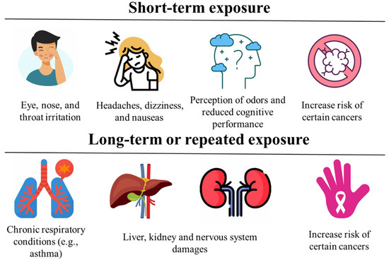 Health effects of VOC exposure: short-term symptoms and long-term risks [11,54].