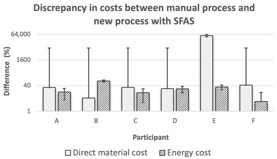 Table 6 shows the estimated cost values for each participant and the differences between the manual and the SFAS system-supported methods. Figure 3 visualizes the participant-level discrepancies in estimated costs between the two approaches. All participants produced manual estimates that differed from those calculated by the SFAS system, indicating that the system-supported method provided more consistent and accurate results.