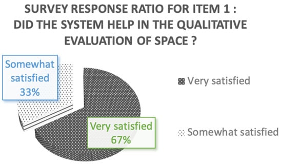 Figure 4 presents the distribution of participant responses to Item 1, which evaluated the overall usefulness of the SFAS system for qualitative spatial evaluation. All participants responded with “somewhat satisfied” or higher, indicating that the system-supported process was perceived as helpful.