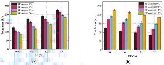 Compression toughness of SFRRGC: (a) RP; (b) SFs.