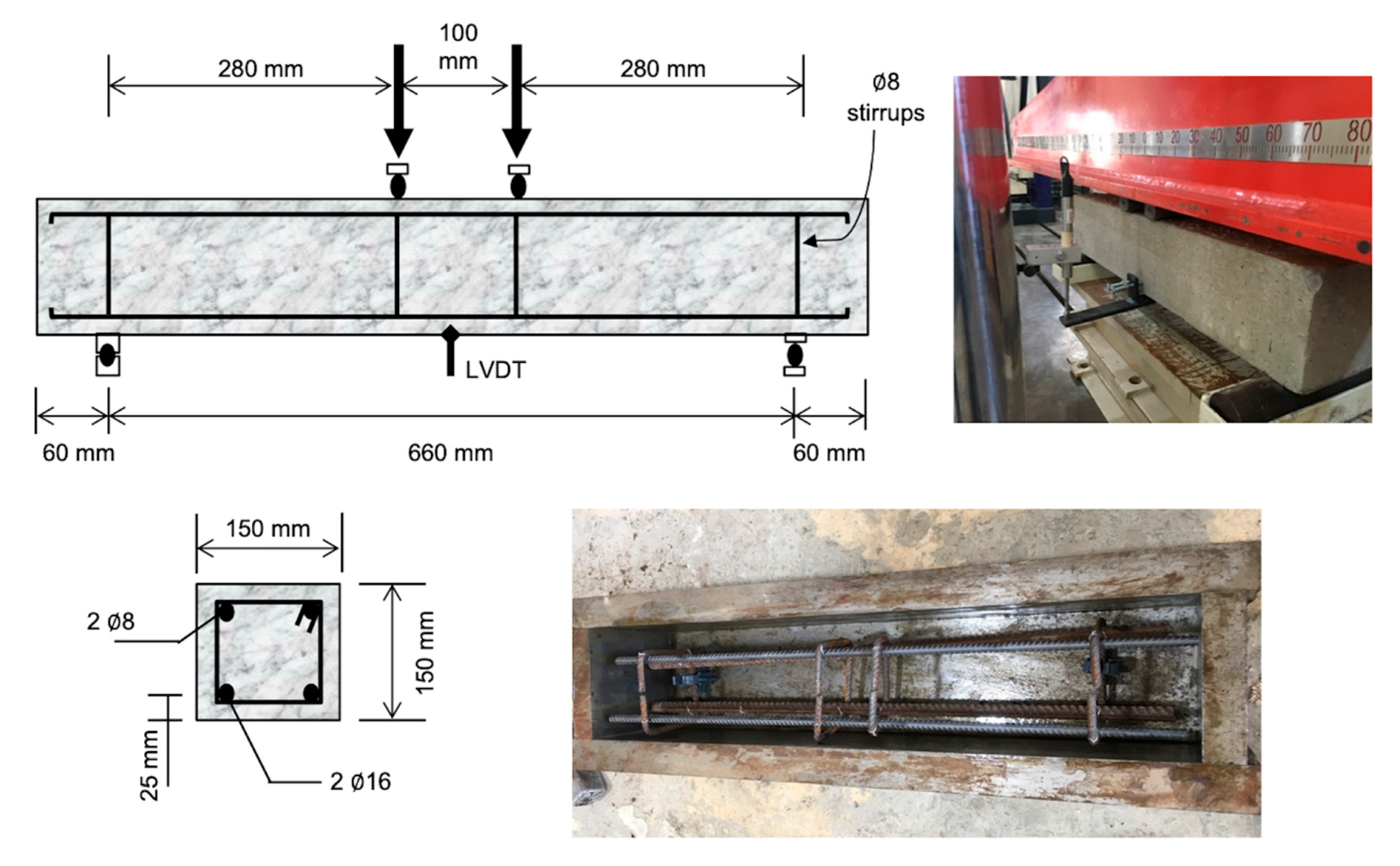 - Aksoylu, C.; Başaran, B.; Karalar, M.; Zeybek, Ö.; Althaqafi, E.; Beskopylny, A.N.; Stel’makh, S.A.; Shcherban, E.M.; Umiye, O.A.; Özkılıç, Y.O. Experimental, Theoretical and Digital Image Correlation Methods to Assess Bending Performance of RC Beams with Recycled Glass Powder Replacing Cement. Sci. Rep. 2025, 15, 25163. [Google Scholar] [CrossRef]