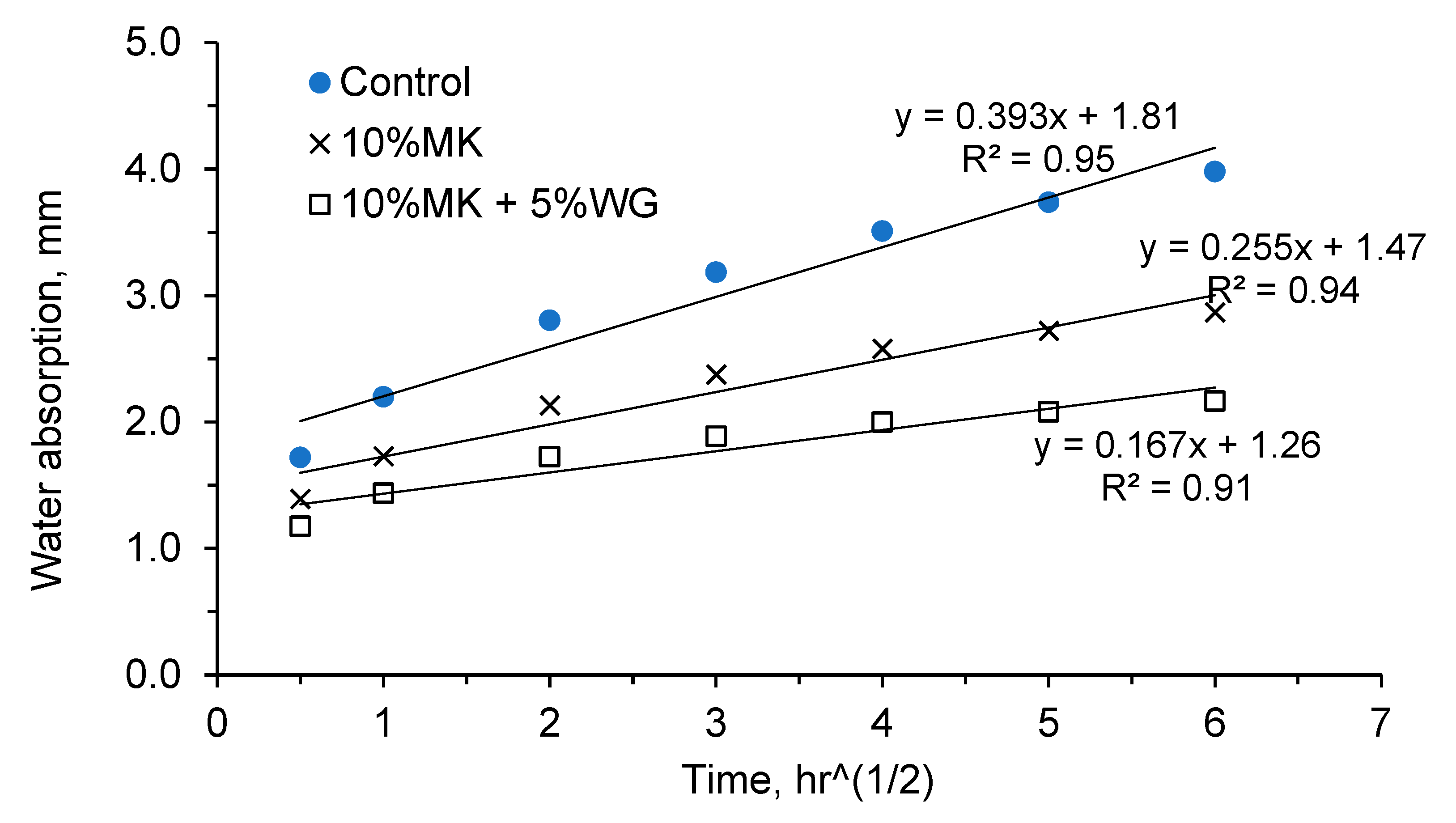 Sorptivity, mm/hr0.5 | 0.393 | 0.255 | 0.36 | 0.167 | 0.214 |