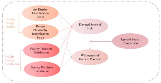 Display design identity reflects whether consumers perceive design as an extension of their personal identity, lifestyle, or social status. In the housing context, it mainly manifests through consumer recognition of residential style and design philosophy. When design aesthetics align with consumers’ personal taste or values, it enhances their elevated sense of style, which in turn shapes purchasing behavior. Willingness to purchase is influenced not only by functional evaluations but also by emotional experiences, price perception, and brand identification. In the residential domain, it depends on both utilitarian features and emotional resonance, including perceived lifestyle enhancement. Pei-Yu Tseng and Su-Fang Lee [56] demonstrated that aesthetic design significantly increases willingness to purchase by eliciting positive emotions and enhancing the perceived value of the visual experience. Based on the SOR model, they found that aesthetic features trigger emotional resonance and promote consumer recognition of design style, thus increasing residential appeal. In the improved housing context, an elevated sense of style enhances the perceived visual elegance of residential design. It leads consumers to identify not only with a home’s functionality but also with the lifestyle it symbolizes. Yu and Lee [57] studied how aesthetic value perception influences consumer attitudes and purchase intentions. They found that emotional and aesthetic attributes of high-end design are critical drivers of decision-making. Elevated sense of style, by delivering elegance through design details and overall composition, enhances emotional attachment and aesthetic pleasure, ultimately stimulating willingness to purchase. Braun [58] explored how architectural aesthetics influence housing investment decisions and concluded that an elevated sense of style affects not only perceived market value but also social identification with the design. In the improved housing market, stylistic sophistication conveys refined lifestyles and social prestige, thereby reinforcing psychological identification and influencing purchase behavior. Liu, Rodriguez, and Huang [59] examined the mediating role of design aesthetics in shaping willingness to purchase and found that when consumers perceive sophistication, elegance, and cultural refinement in a product or space, it strengthens their emotional satisfaction and sense of identity extension. Design thus becomes not merely a visual embellishment but a symbol of taste and lifestyle. Through this style elevation mechanism, an emotional connection between consumers and products is established. In the improved housing market, stylistic refinement affects both aesthetic recognition and social identity, ultimately motivating purchase decisions. Elevated sense of style, therefore, serves a dual role: emotional catalyst and psychological identifier.