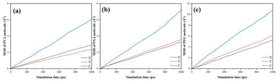 The MSD results of polymers: (a) PVA; (b) PAA; (c) PEG.