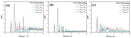 The RDF results of polymers/CSH: (a) PVA; (b) PAA; (c) PEG.