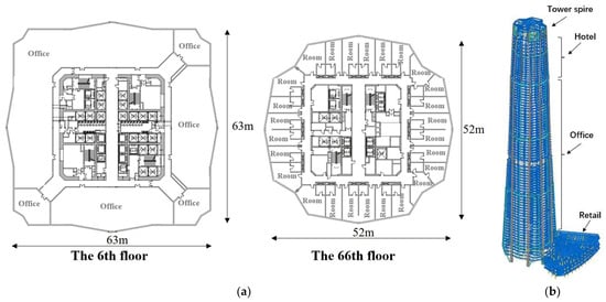The floor plan and overall shape of the tower. (a)Typical floor plan; (b)The tower model.