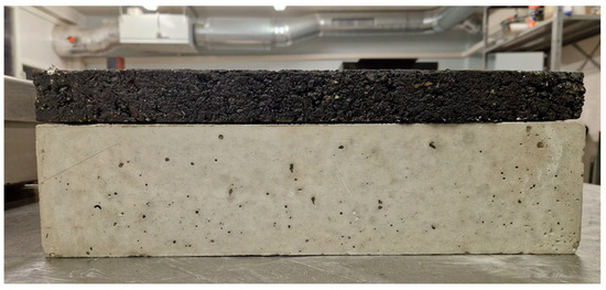 Specimens for the rolling resistance test were prepared in two stages (Figure 4). First, asphalt mixture slabs (40 × 260 × 410 mm) were compacted using a slab compactor manufactured by infraTest Prüftechnik GmbH following EN 12697-33 requirements. After cooling, the asphalt slabs were affixed with binder to the prepared concrete base plate.